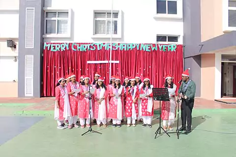 Makara Sankranti was celebrated in school on 13 January, 2023. The Pongal pot with sugarcane and kites were part of the decoration for this harvest festival. The Sankranti celebrations at school began with the students singing song related to the harvest festival and the teachers educated the students on the importance of celebrating the harvest festival Makar Sankranti. A cow and its calf were brought to the school ground and pooja was performed. The children enjoyed watching and fly kites.