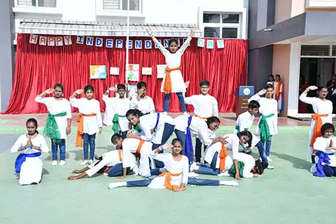 Ms. Deepti Parlia, Hindi teacher, motivated the assembly with a heart-warming and patriotic speech. The celebration was an artistic amalgamation of emotions, colour, and zeal. Arnav, a talented student from grade 3, captivated the audience with a soul-stirring solo performance, reminding everyone of the essence of independence. The collective energy and enthusiasm of students from grades 4 to 7 manifested in a spirited group dance that filled the air with infectious joy.