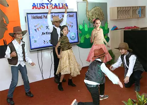 Grade 1 students presented the largest continent Asia through the costumes of different countries in Asia followed by melodious number and graceful fan dance. Italian dance, French Welcome song and the confident presentation about the Europe by Grade 2 was indeed a memorable experience for the audience. Dark continent was bought to light by the Grade 3 students through their energetic performances. The amazing Americas was presented with an equally mesmerizing presentation by Grade 4 students, while Grade 5 students took the parents on a brief but colourful tour of Australia. Not to forget the skit on saving tress by the students of grade 1 to 3, gave a strong message to everyone about conservation of trees with their diligent breathtaking performance.