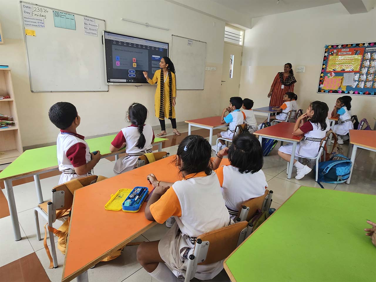 The theme for this year's celebration is "Touching Lives while Touching the Moon: India's Space Saga". Students at NPSPHRD celebrated National Space Day by engaging in various activities, including a quiz to test their knowledge of space exploration, watching a video of the Vikram landing, and creating artwork inspired by the Chandrayaan-3 mission. These activities aimed to inspire young minds to pursue careers in space science and highlight India's advancements in space technology.