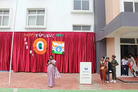 Republic Day is the day to cherish this great nation and feel proud to be a part of it. Upholding the spirit of patriotism and sense of duty towards the country, the students and staff of NPS School, Hosur Road, Electronic City, Bangalore celebrated 74th Republic Day on 26th January 2023. The celebration began with march-past by the students of grades 6-9, followed by a welcome speech reminiscing the contributions of our leaders in achieving freedom and framing the constitution. The students brought to life the great leaders they dressed as and quoted their lines eloquently. Students’ melodious rendition of “Jhanda uncha rahe hamara” left everyone humming the tune. The energizing dance performances set to resonant popular patriotic songs aroused allegiance towards our motherland. The school rejoiced in the glory of India and its freedom fighters on the occasion of Republic Day celebration.