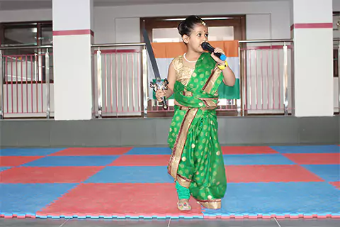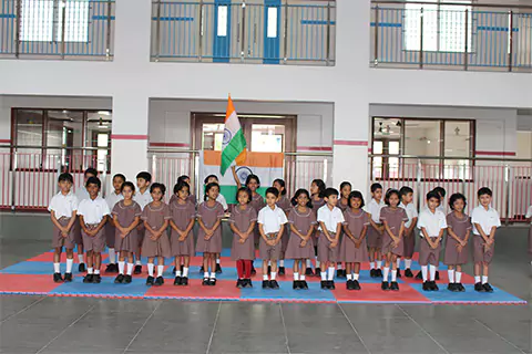 The ceremony began with the unfurling of the Indian tri-colour flag and playing of the national anthem followed by the cultural programmes. The entire school performed different events with a lot of zeal and enthusiasm in respect to our nation. The KG students depicted the fervour of Independence with a colourful display of national symbols and the freedom fighters in the fancy-dress event. The students of Grades 1-5 performed patriotic songs, dance and drama to uphold the integrity and a strong spirit of patriotism
